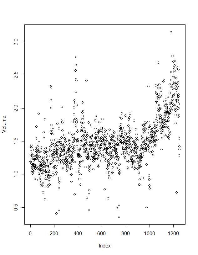 plot(Volume) # makes scatter plot (for this data type, different plot if different type) #Figure 1