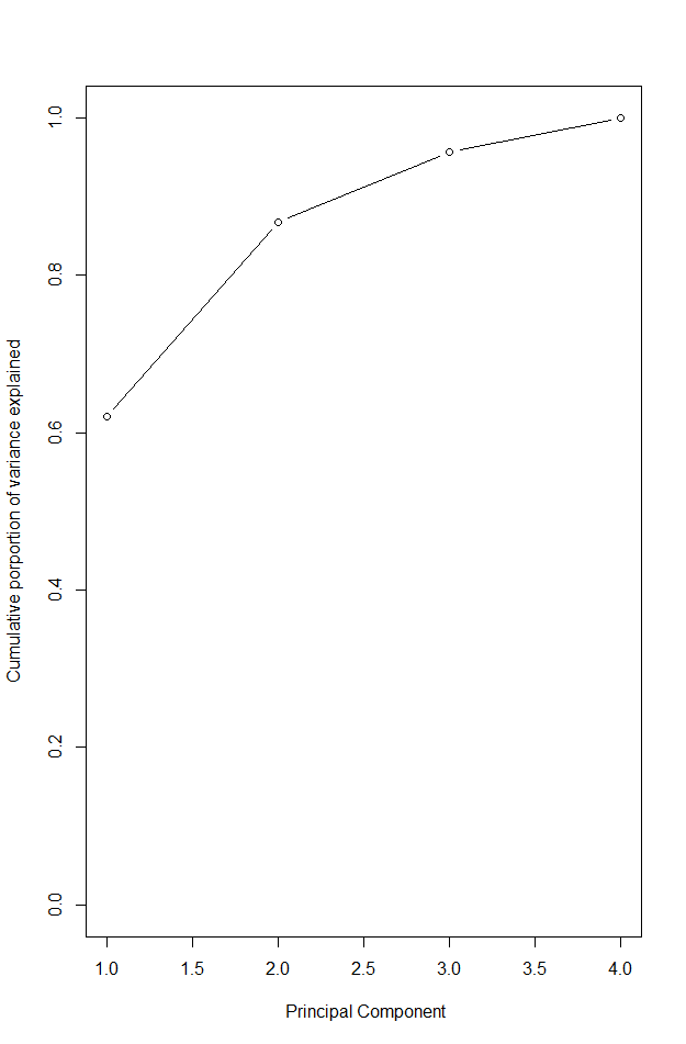 ylab = "Cumulative porportion of variance explained",